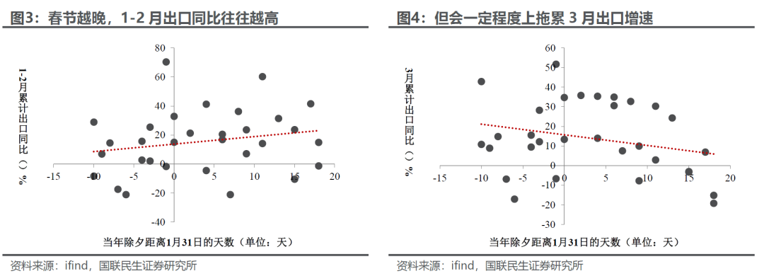 开年出口强劲的背后,存在春节错位效应的短期扰动。从历史经验来看,由于制造商通常会在春节前加大出口,因此春节时点靠后往往会抬高1-2月出口、压低3月出口表现。今年春节较去年延迟近20天,进一步推动了1-2月企业的抢订单行为。
